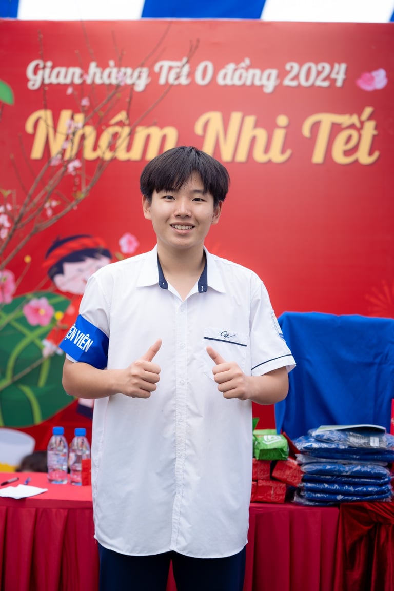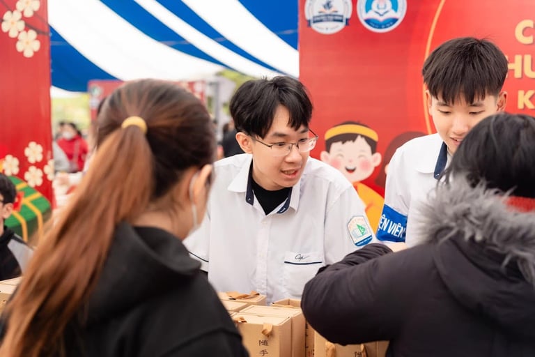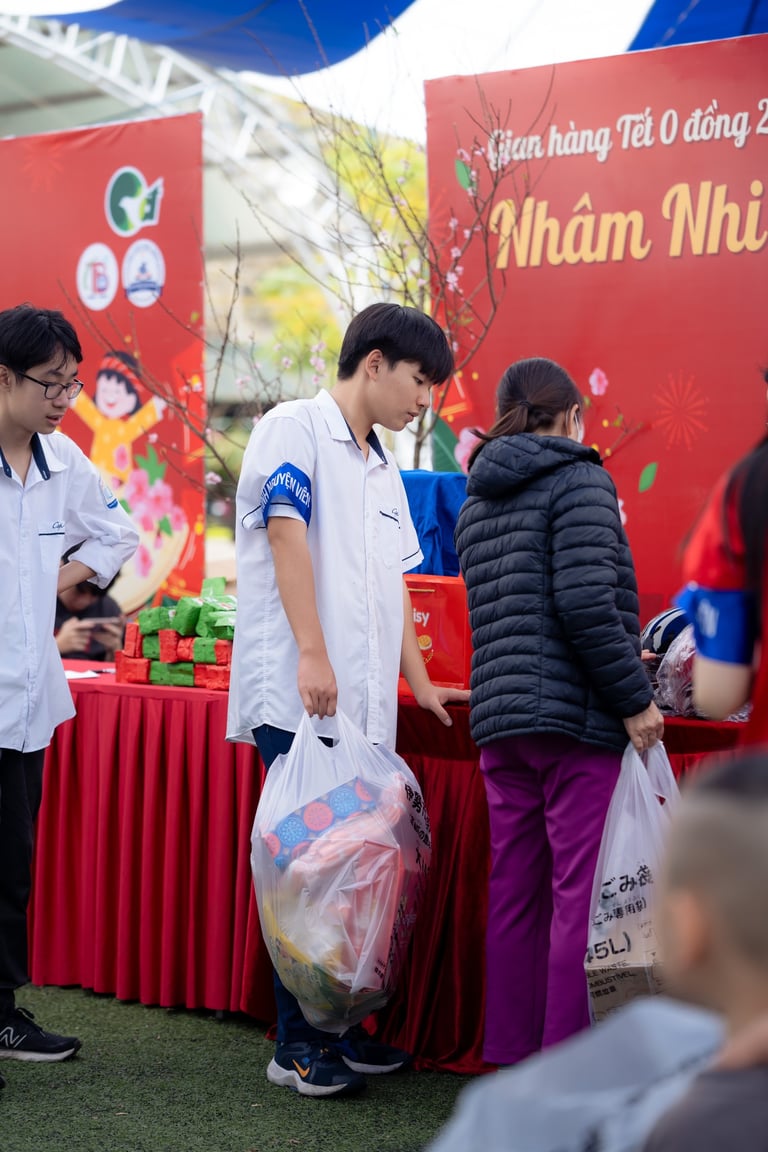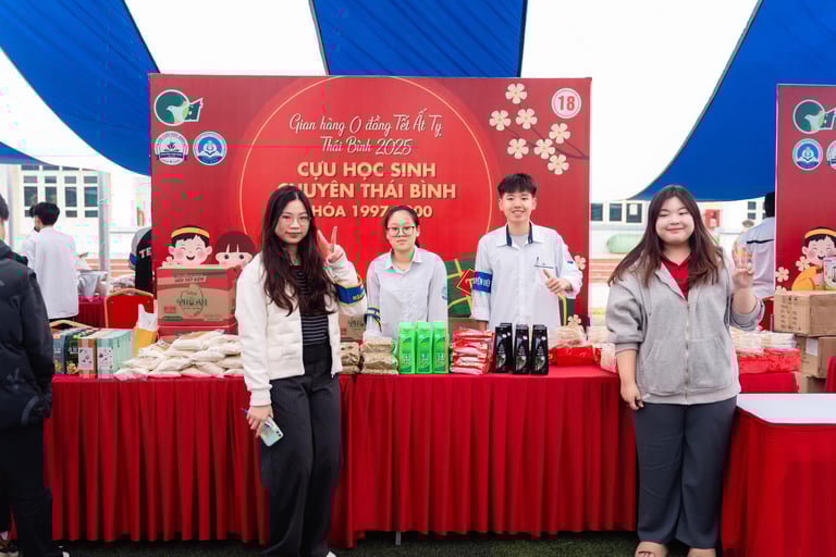 It was a charitable Tet market in Thai Binh, organized annually to bring a warmer, more fulfilling holiday to people in need. For me, it turned out to be an unforgettable experience. My tasks were mainly logistics and running a booth. On the logistics side, I helped with carrying supplies and preparing countless donated gifts that came from all over Vietnam. At the booth, I had the unique opportunity to hand over items directly - from simple bottles of cooking oil to more valuable things like electric kettles - to families facing hardship. Throughout the process, I also met many Thai Binh students, who were incredibly energetic and friendly. Looking back, I know these are memories I will never forget: doing something meaningful, meeting amazing people, and contributing to my community at the same time.